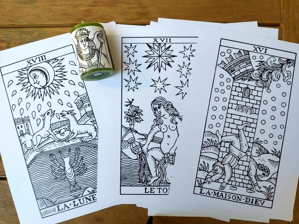 Ideal para pintar y enmarcar. Pero mejor aún, para canalizar los arcanos, meditar sobre cada uno de los arquetipos y empezar a sentir lo que te sugieren.